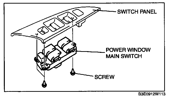 5. Remove the screws, then remove the power window main switch.