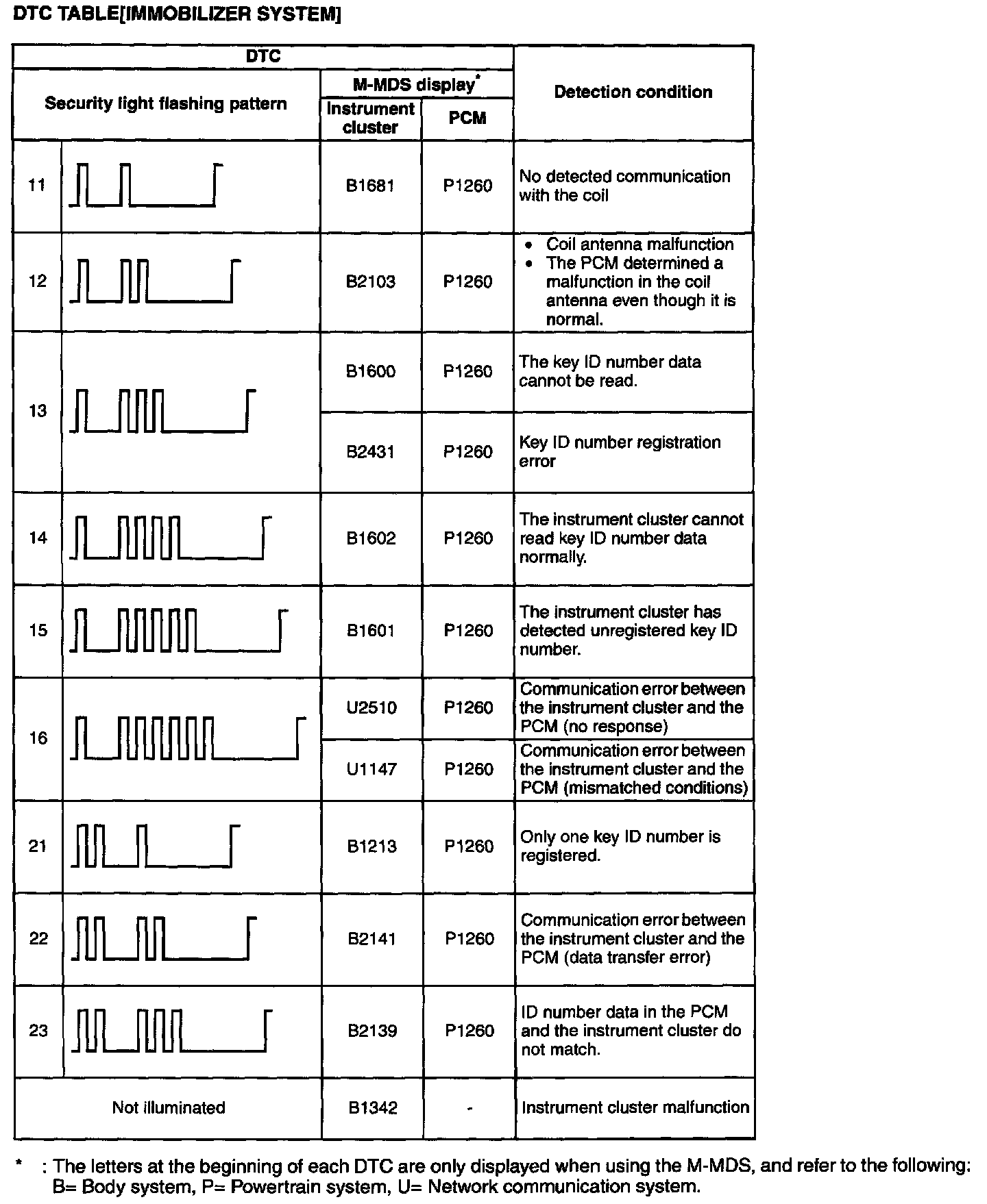 DTC Table (Immobilizer System):