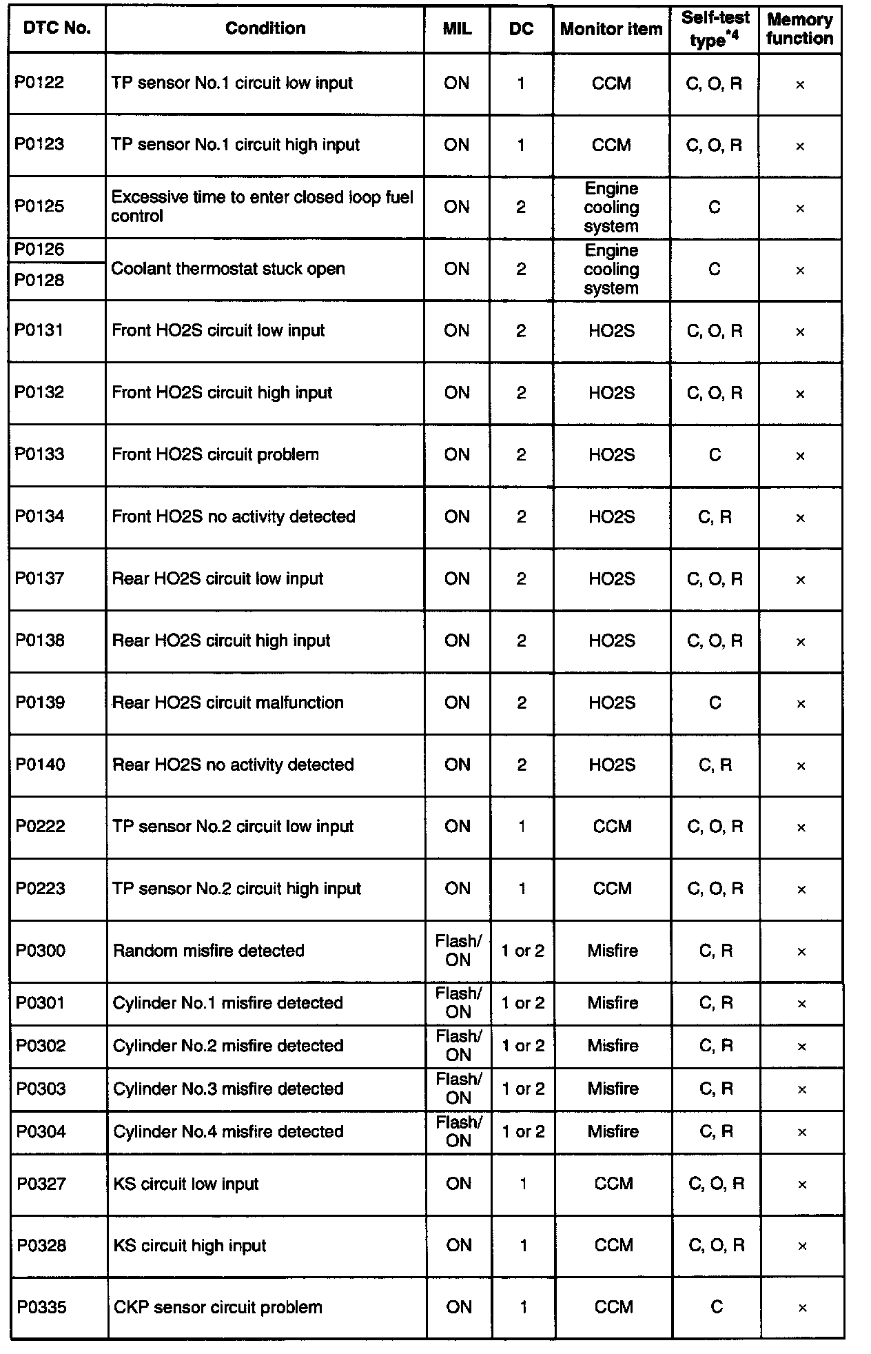 P0122 - P0335: