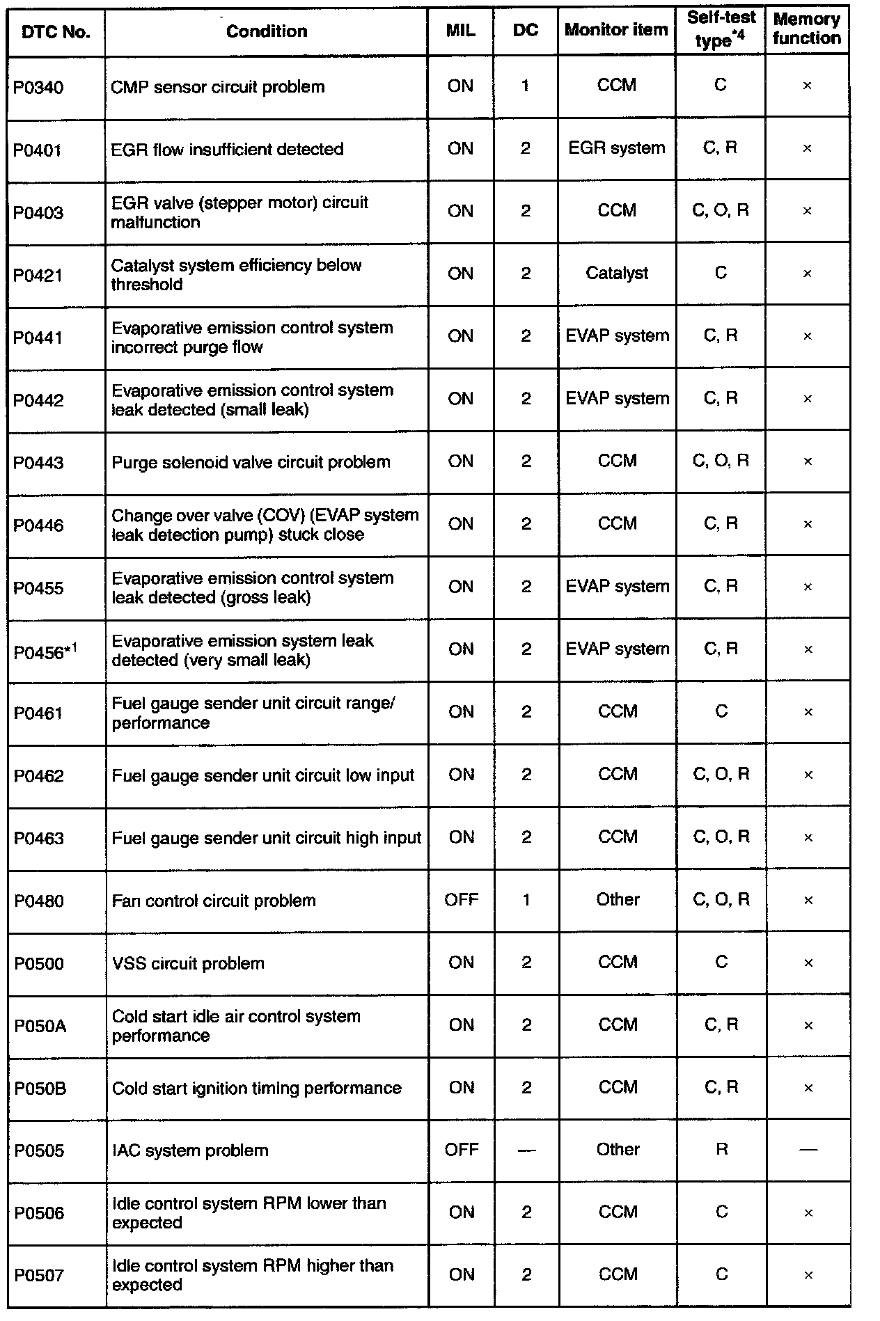P0340 - P0507: