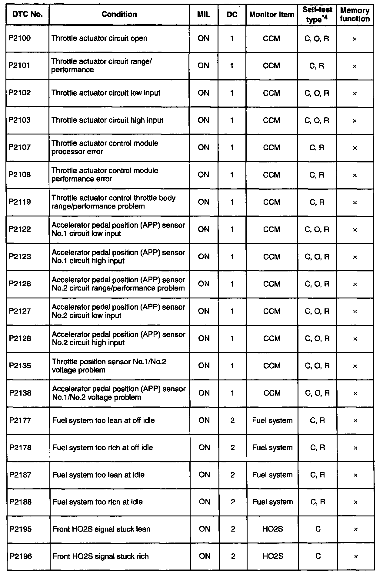 P2100 - P2196: