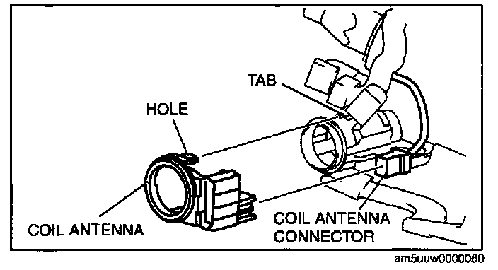 5. Detach the steering lock tabs from the holes on the coil antenna.
