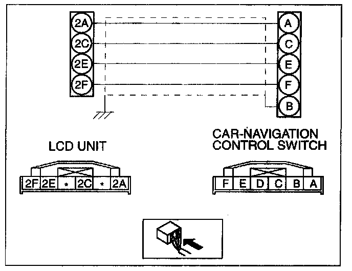 2. Inspect the wiring harness between the LCD unit and the car-navigation control switch for an open circuit, power short, or a short to ground.
