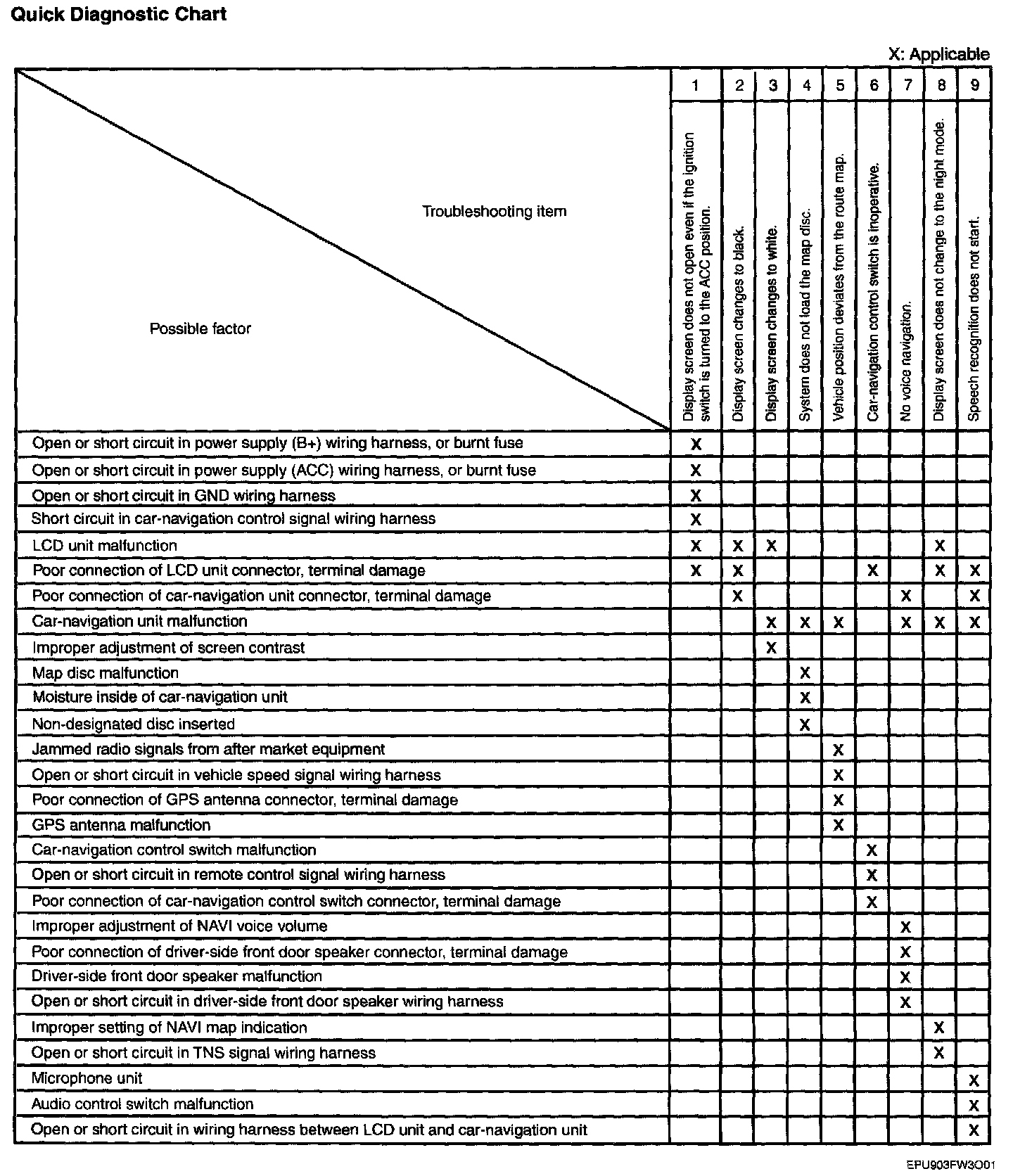 Quick Diagnostic Chart (Car Navigation System):