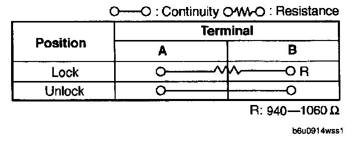 Inspect for continuity between the door lock switch terminals using an ohmmeter.