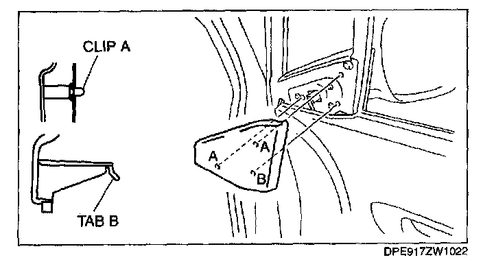 3. Pull the inner garnish outward and detach clips A.
