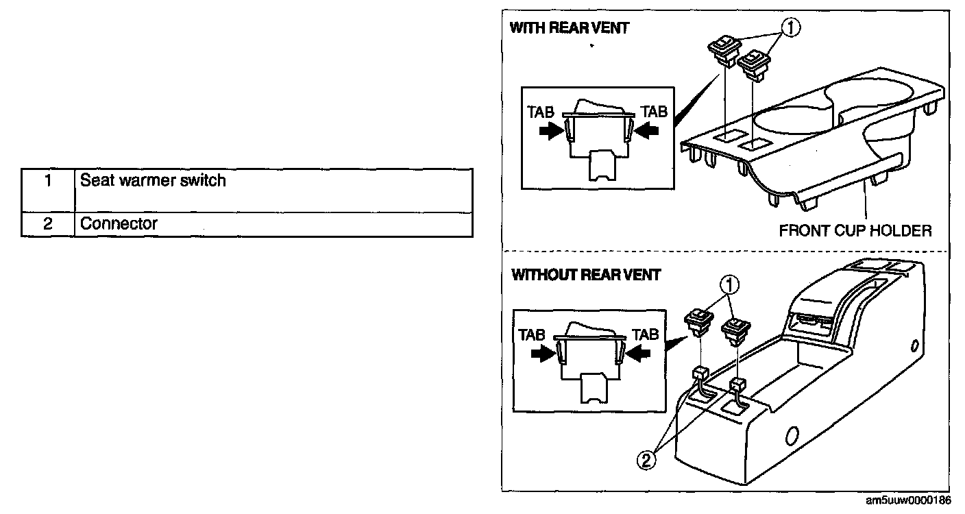 1. Squeeze the tabs of seat warmer switch and pull it outward to remove it.