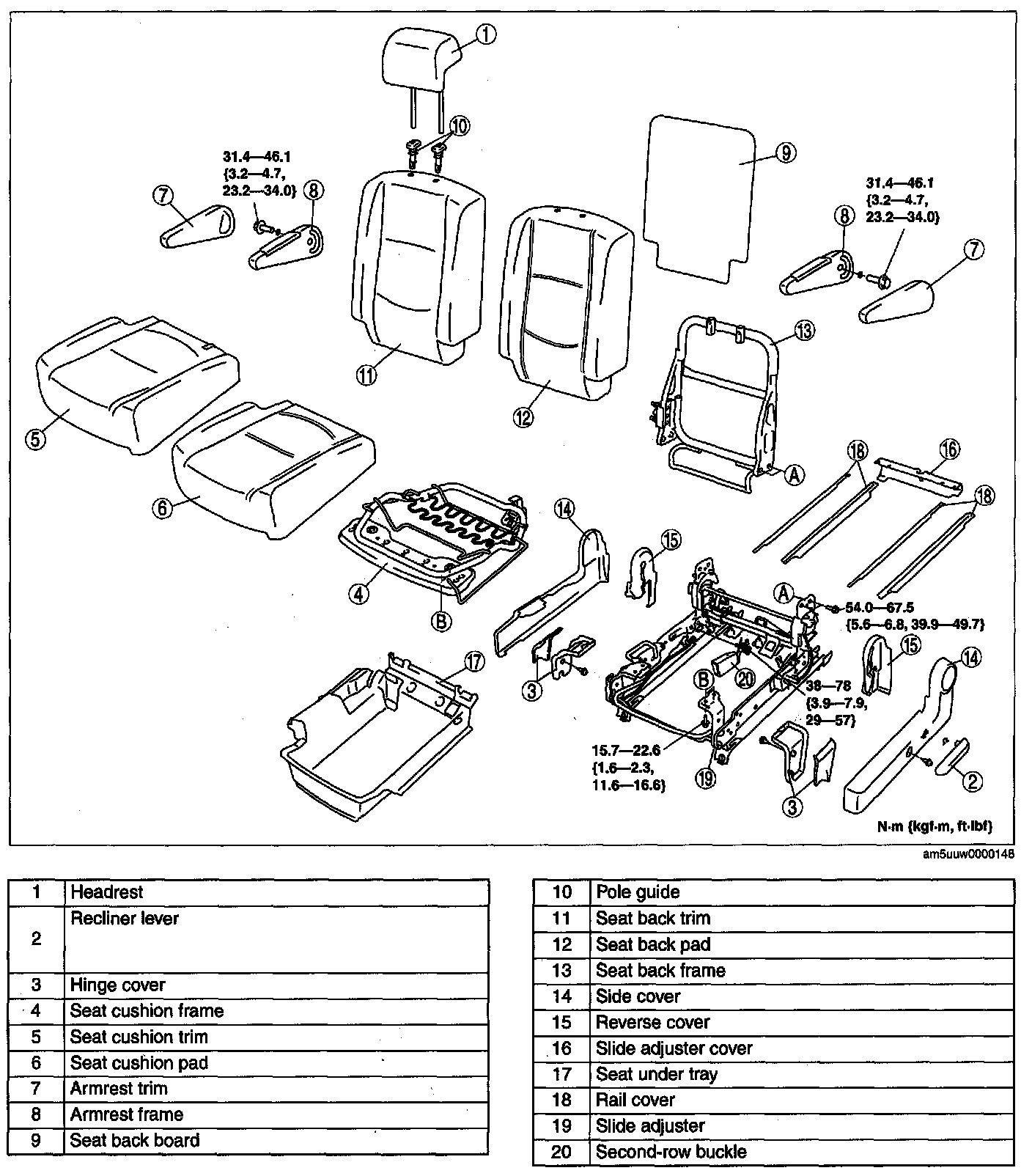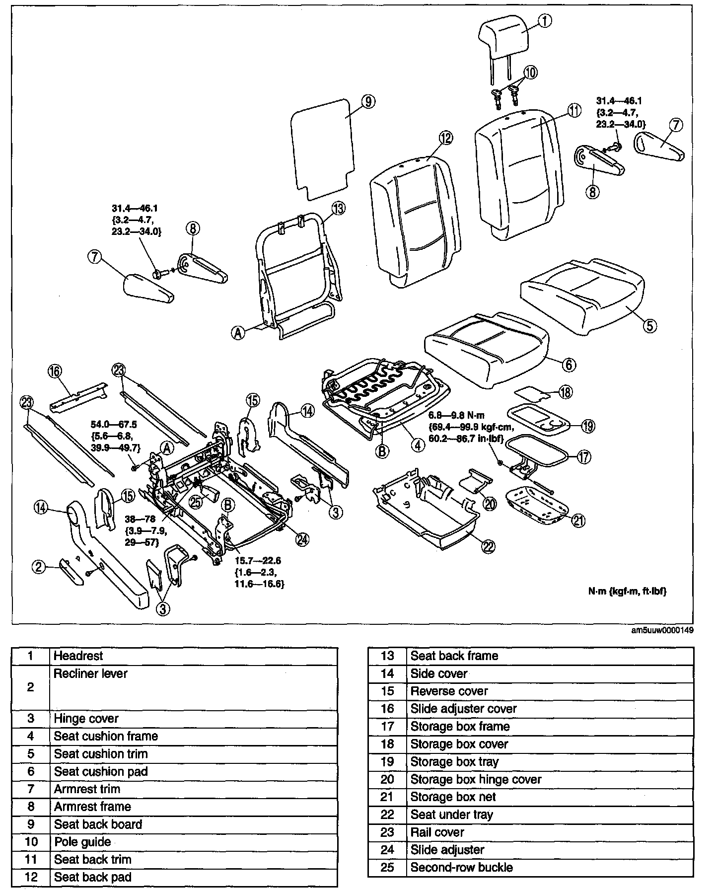 SECOND-ROW SEAT DISASSEMBLY/ASSEMBLYDriver's Side