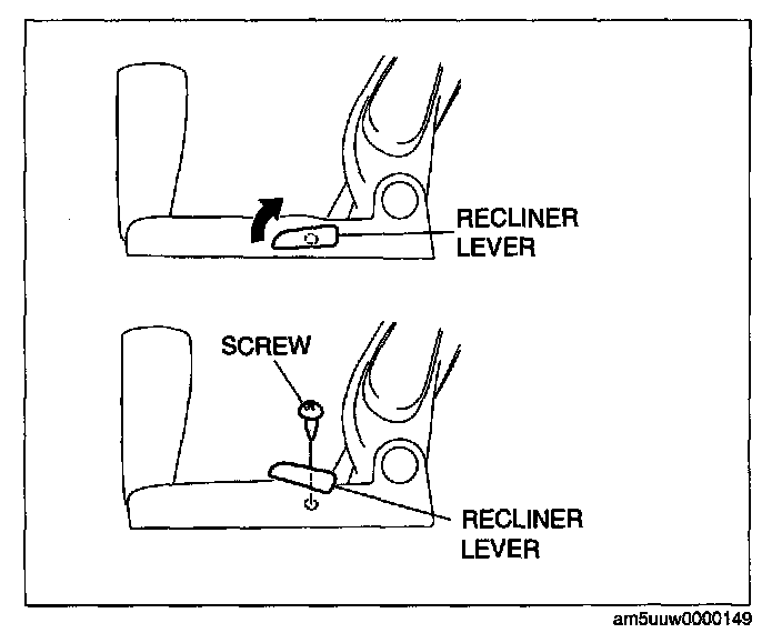 3. While pushing the recliner lever in the direction of the arrow, remove the screw.