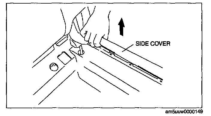 1. Insert a hand into the position indicated in the figure and lift the side cover in the direction of the arrow.