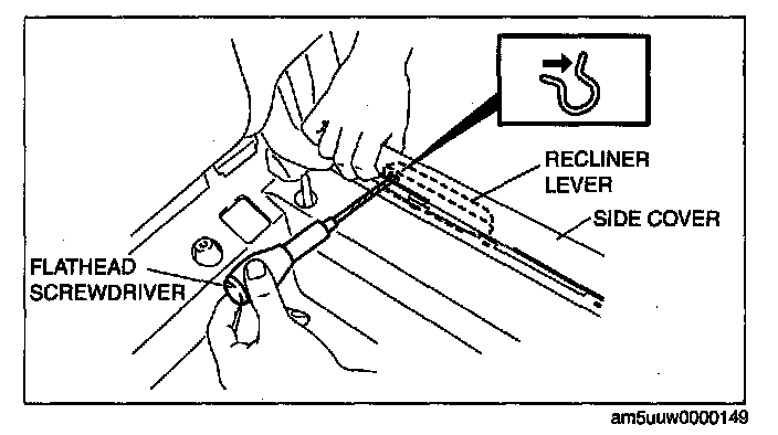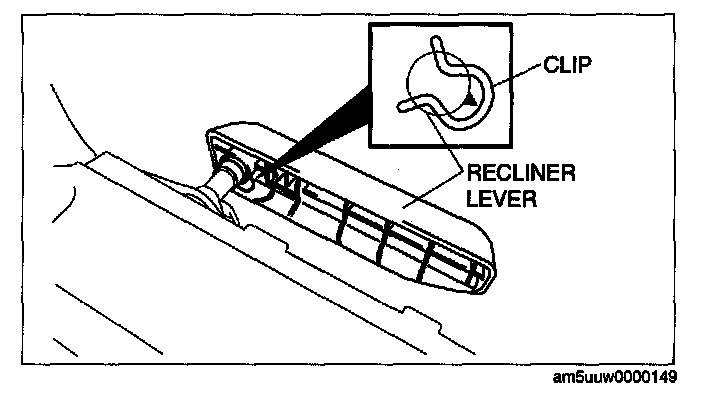 3. Remove the clip which is attached to the recliner lever by pressing it in the direction of the arrow.