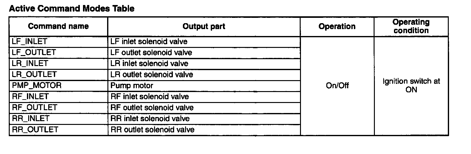 Active Command Modes Table: