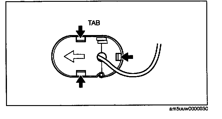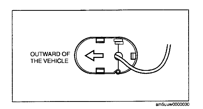 1. Install the ABS hole cover into the body so that the arrow on it is facing toward the outer side of the vehicle.
