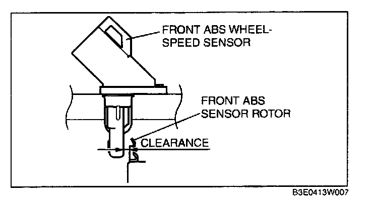 1. Inspect the clearance between the front ABS wheel-speed sensor and the ABS sensor rotor.
