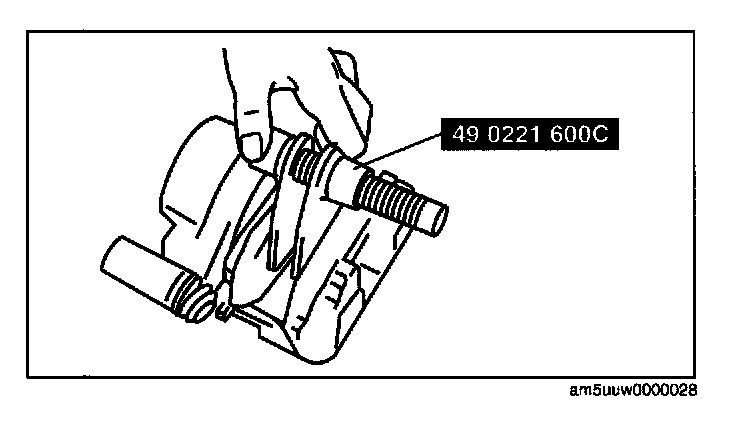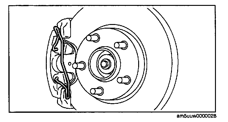 1. Temporarily install the retaining clip to the caliper and mounting support as shown in the figure.
