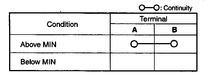 2. Inspect for continuity according to fluid level between the brake fluid level sensor terminals.
