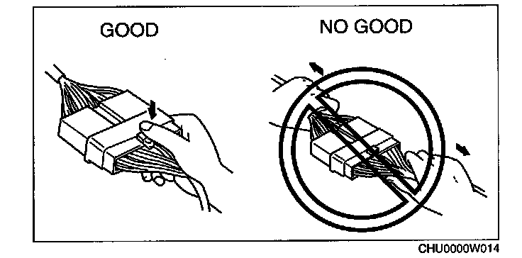 ^ Inspect the terminals of waterproof connectors from the connector side since they cannot be accessed from the wiring harness side.