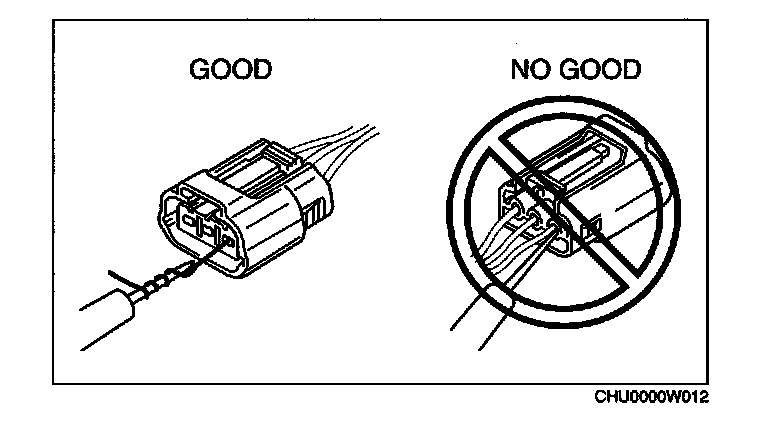 Caution: To prevent damage to the terminal, wrap a thin wire around the tester probe before Inserting Into terminal.