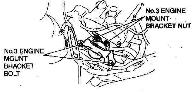 Caution: Do not tighten the No.1 engine mount rubber installation bolt before tightening the No.3 engine mount rubber installation bolt.