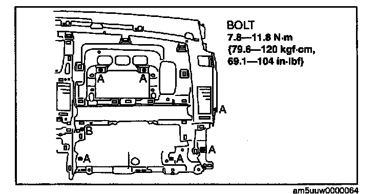 5. Remove the bolt at B in the figure.