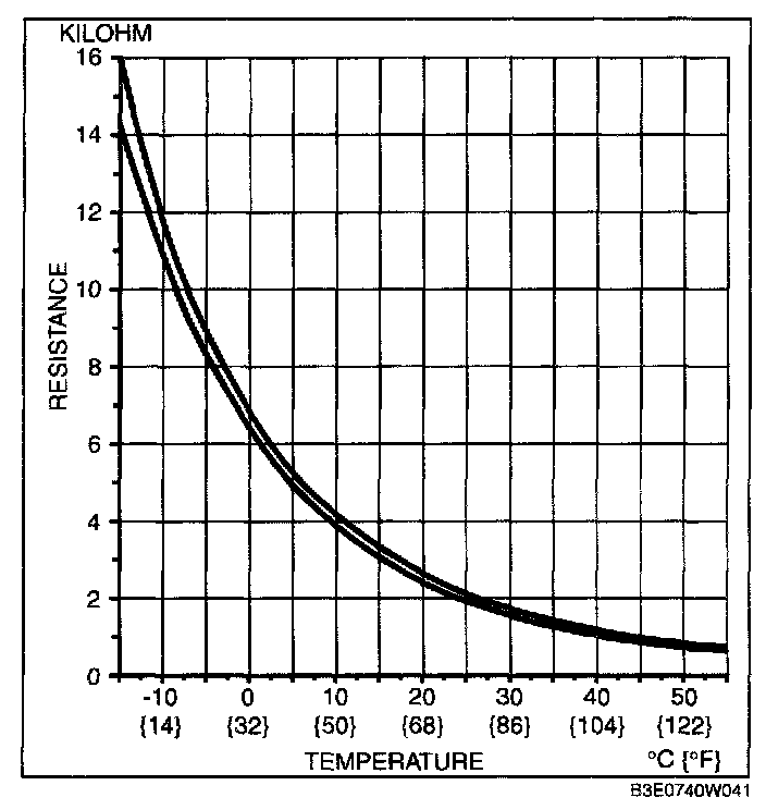 - If the resistance is not as shown in the graph, replace the evaporator temperature sensor.