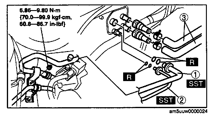 1. When replacing the A/C unit or evaporator, add compressor oil to the refrigerant cycle.