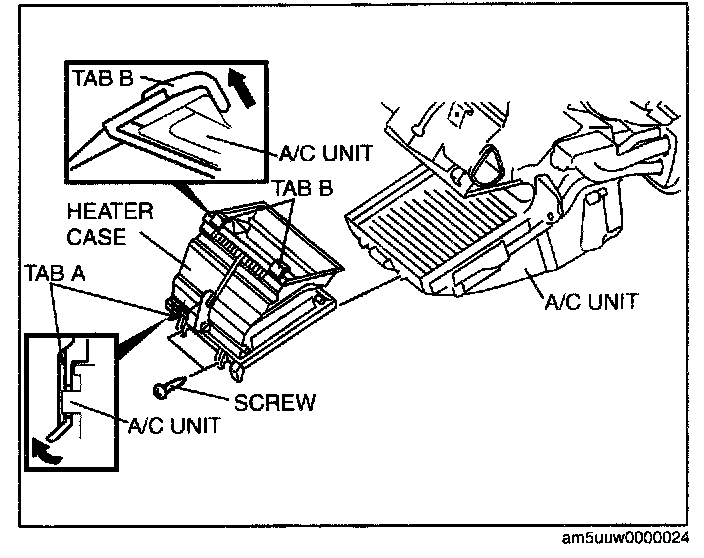 7. Remove the A/C unit installation nut from the engine compartment, then remove the A/C unit.