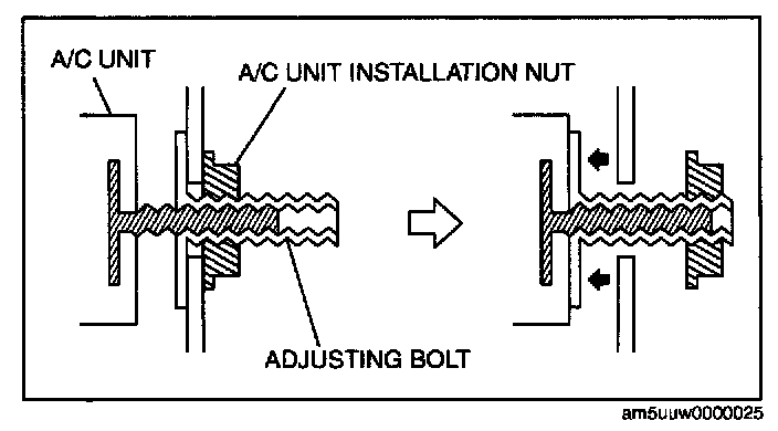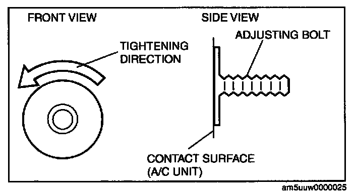 2. Tighten the A/C unit adjusting bolt until it lightly touches the A/C unit.