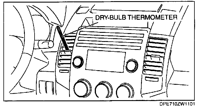 2. Place a dry-bulb thermometer in the driver-side center ventilator outlet.