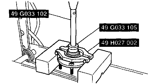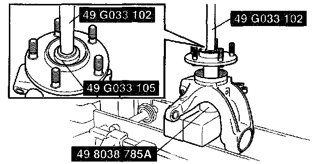 1. Install the wheel hub component so that there is no clearance between the wheel hub and the bearing using the SSTs.