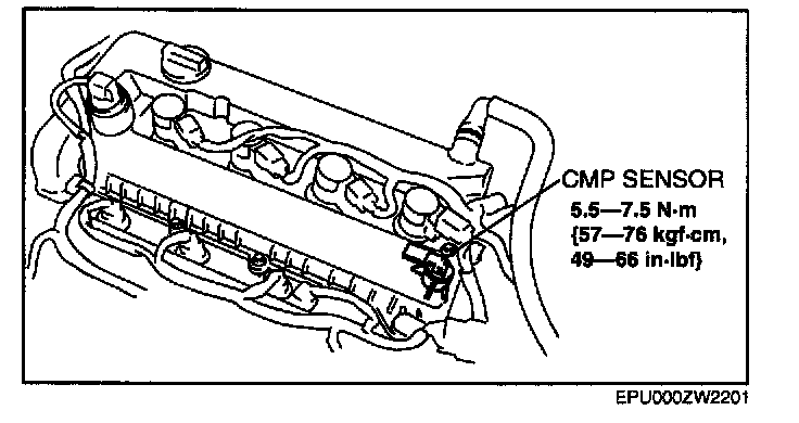 CAUTION: When replacing the CMP sensor, make sure there is no foreign material on it such as metal shavings. If it is installed with foreign material, the sensor output signal will malfunction resulting from fluctuation in magnetic flux and cause a deterioration in engine control.