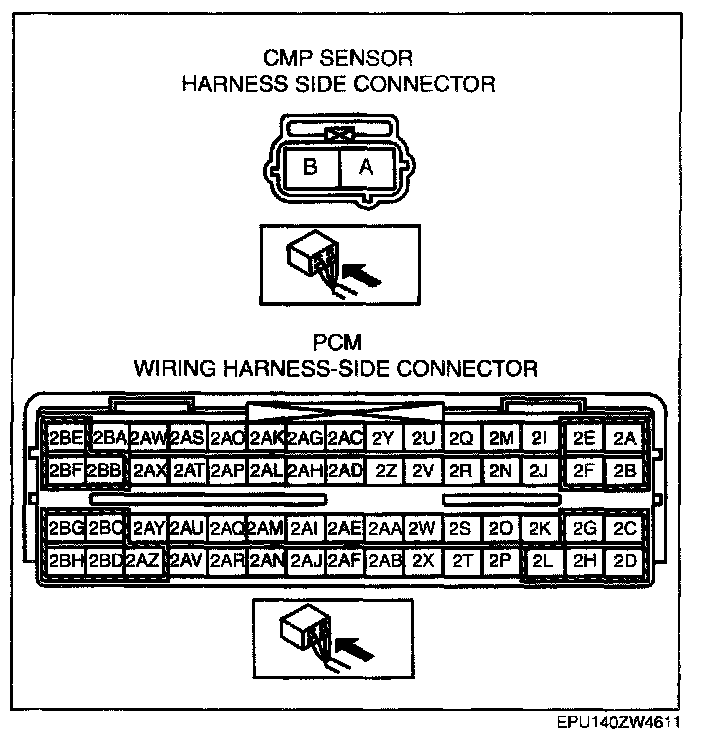 - CMP sensor terminal B and PCM terminal 2U