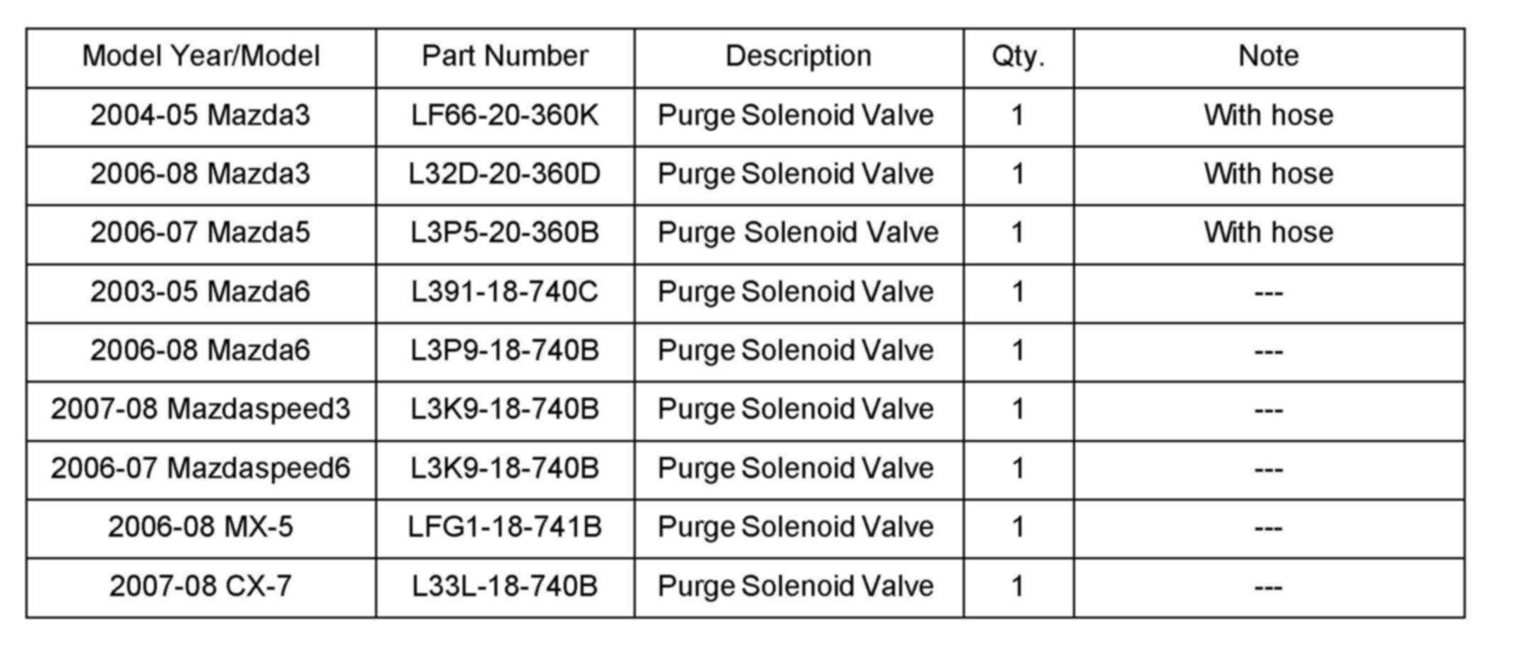 The purge solenoid valve manufacturing process has been changed to eliminate this concern.