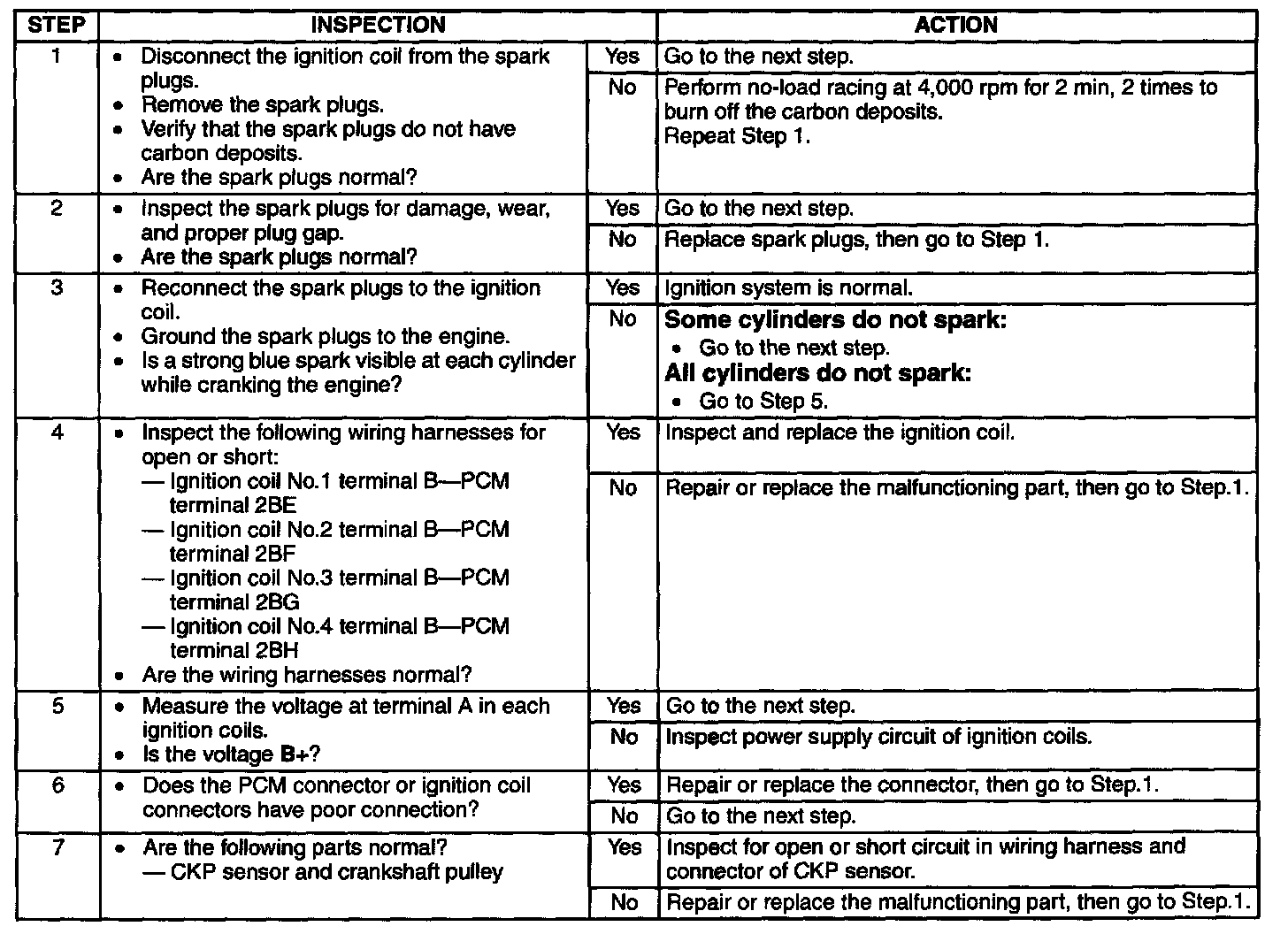 3. Inspect the ignition system in the following procedure.