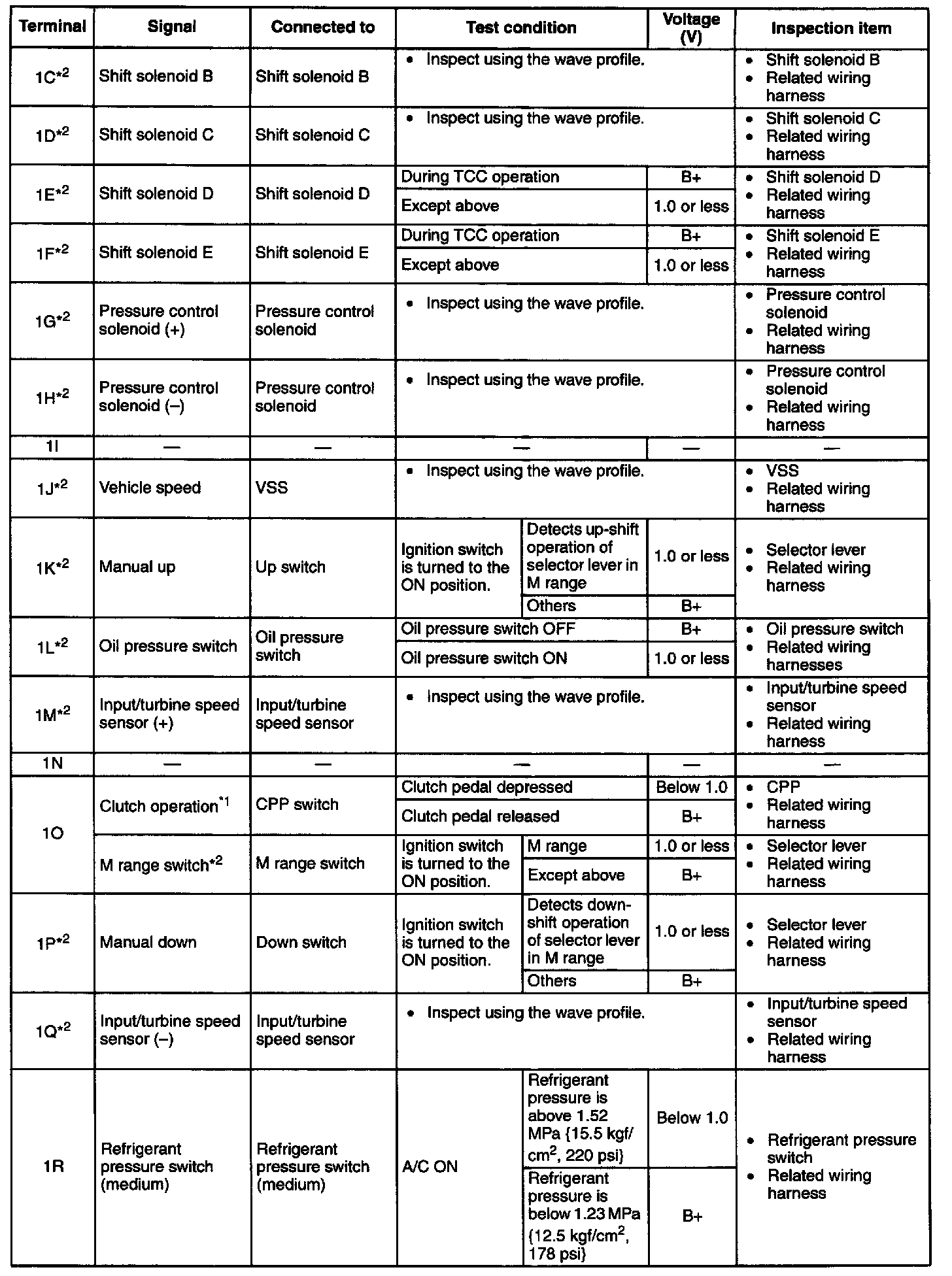 NOTE: The PCM terminal voltage can vary with the conditions when measuring and changes due to aged deterioration on the vehicle, causing false diagnosis. Therefore determine comprehensively where the malfunction occurs among the input systems, output systems, and the PCM.