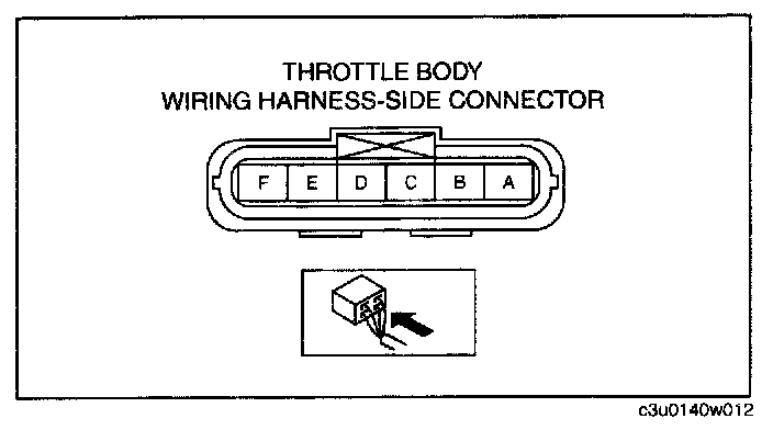 THROTTLE POSITION (TP) SENSOR INSPECTION[L3]CAUTION: This inspection procedure cannot be completed correctly if the accelerator pedal position sensor has a malfunction. Before performing this procedure, verify that any one of the DTCs (P2122, P2123, P2127, P2128, P2138) related to the accelerator pedal position sensor is not detected.