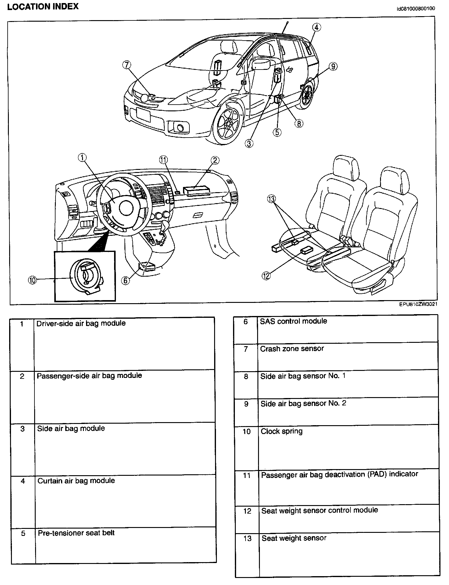 Air Bag System Location Index: