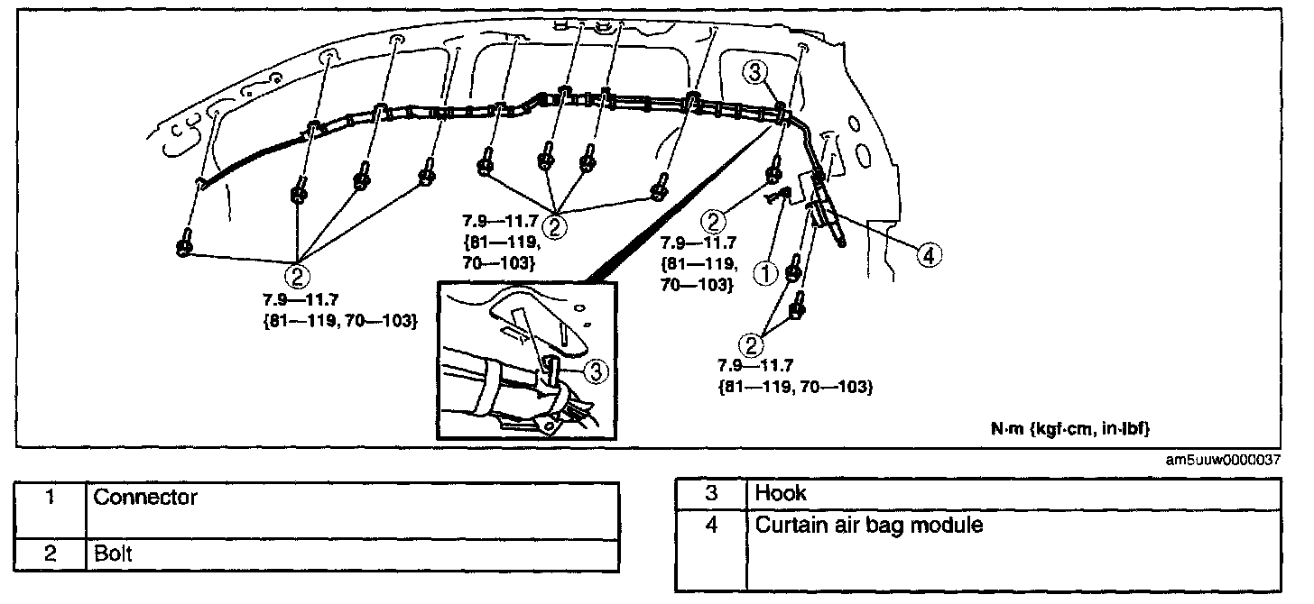 CURTAIN AIR BAG MODULE REMOVAL/INSTALLATIONWARNING: Handling the air bag module improperly can accidentally deploy the air bag module, which may seriously injure you. Read the air bag system service warnings and cautions before handling the air bag module.