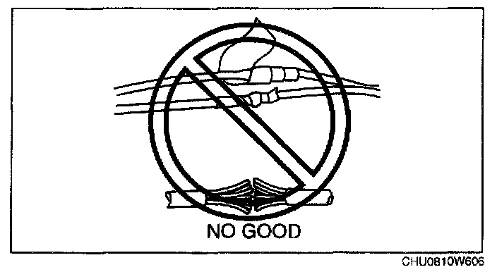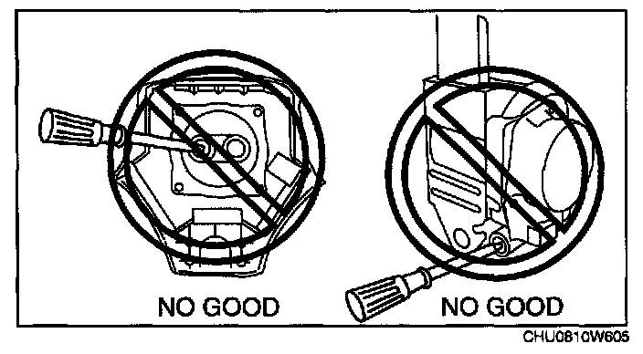 - Inserting a screwdriver or similar object into the connector of an air bag module or a pre-tensioner seat belt may damage the connector and cause the air bag module or the pre-tensioner seat belt to operate (deploy) improperly, which may cause serious injury. Never insert any foreign objects into the air bag module or seat belt connectors.