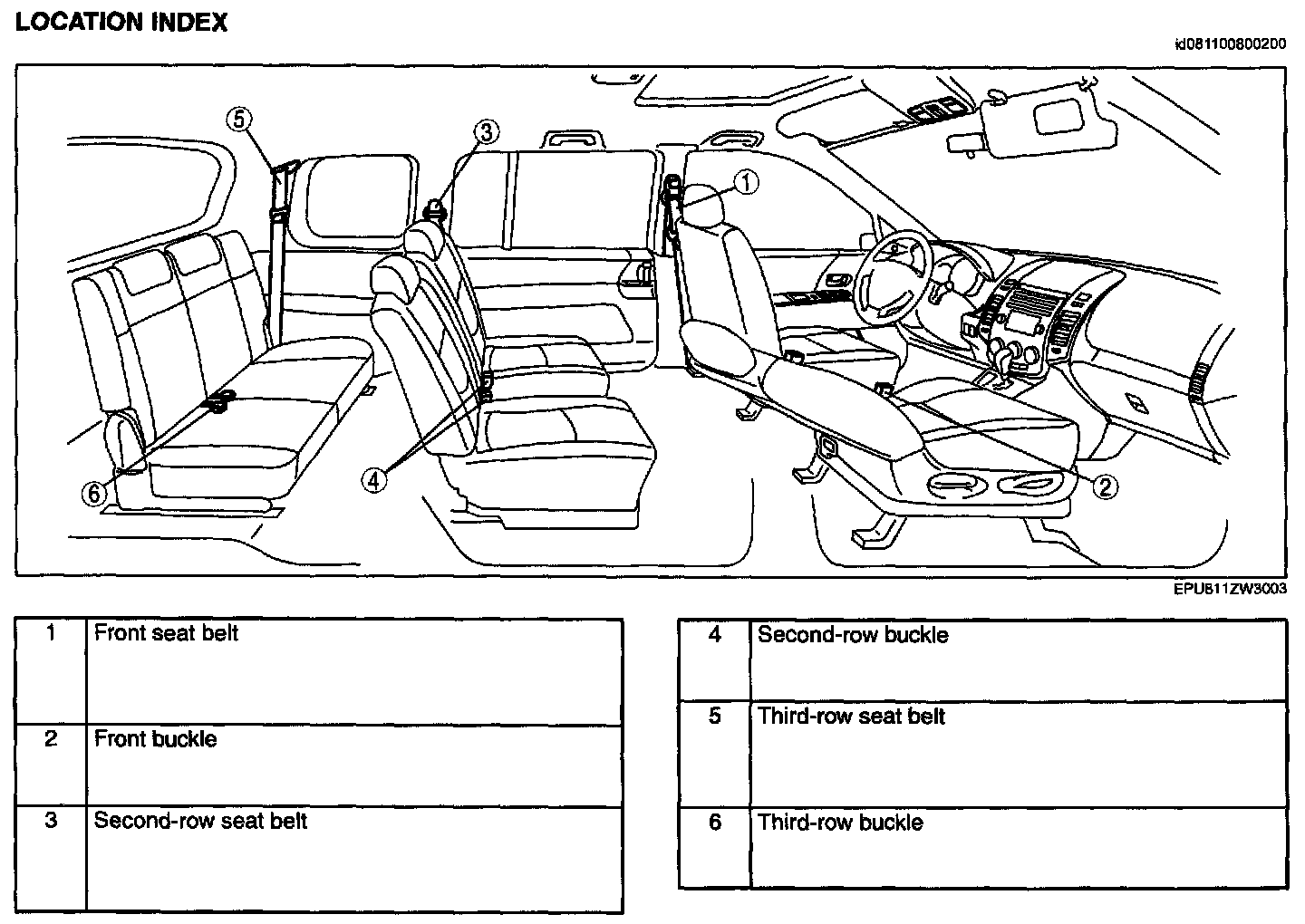 Seat Belt Location Index: