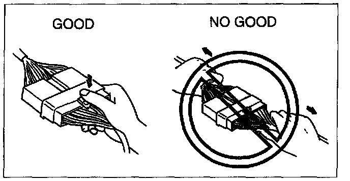- Connectors can be disconnected by pressing or pulling the lock lever as shown.