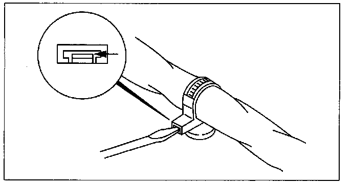 Wiring harness- To remove the wiring harness from the clip in the engine room, pry up the hook of the clip using a flathead screwdriver.
