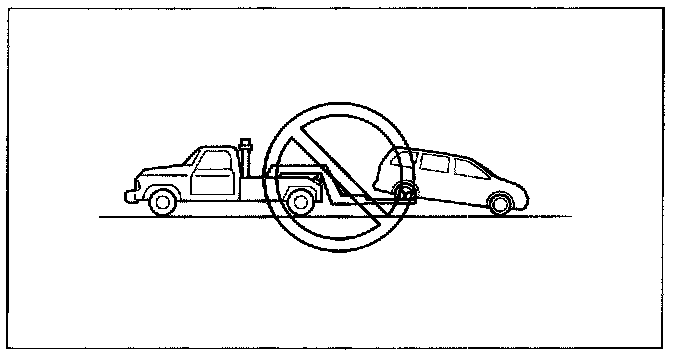 CAUTION: Do not tow the vehicle pointed backward with driving wheel on the ground. This may cause internal damage to the transaxle.