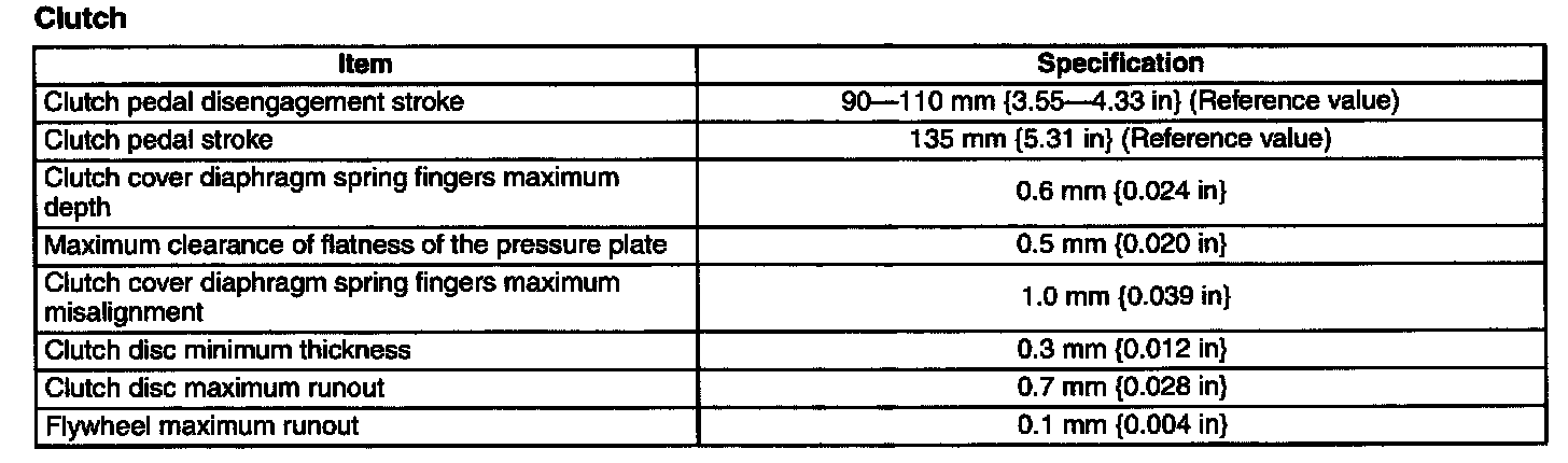 Transmission/Transaxle Technical Data Clutch: