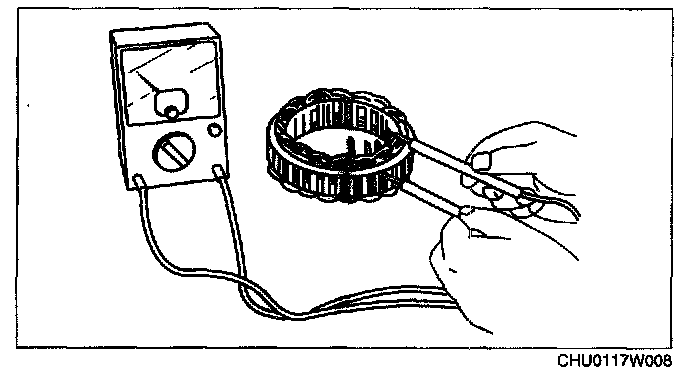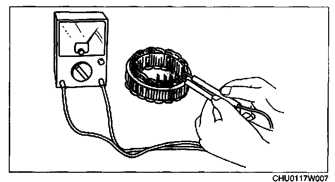 2. Verify that there is no continuity between the stator coil leads and the core using a tester.