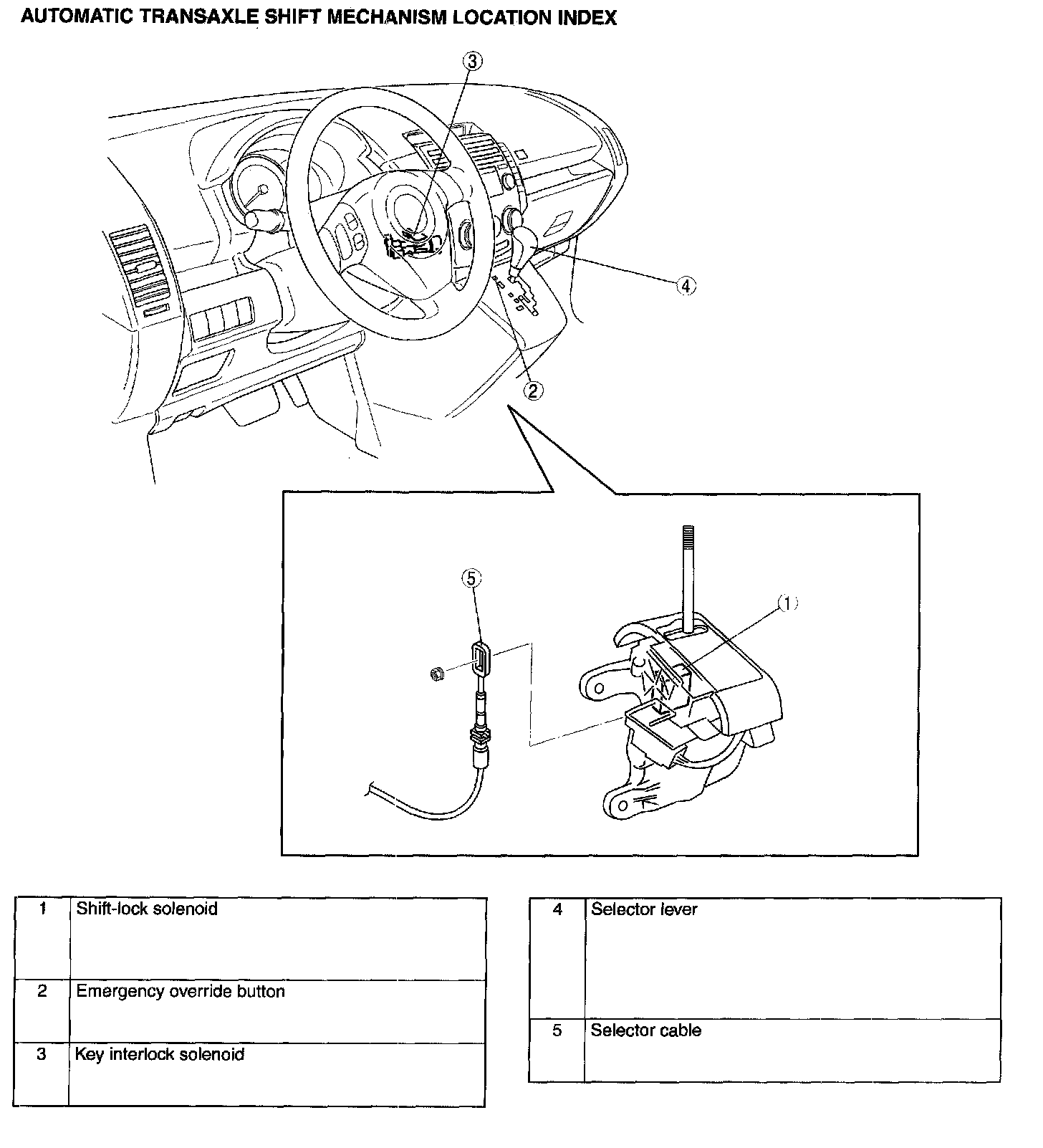 AUTOMATIC TRANSAXLE SHIFT MECHANISM LOCATION INDEX: