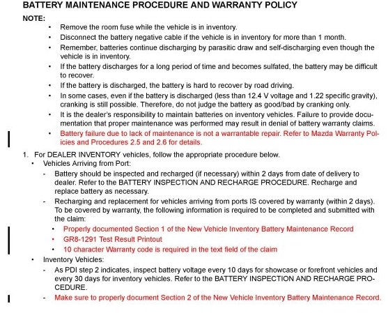 BATTERY MAINTENANCE PROCEDURE AND WARRANTY POLICY