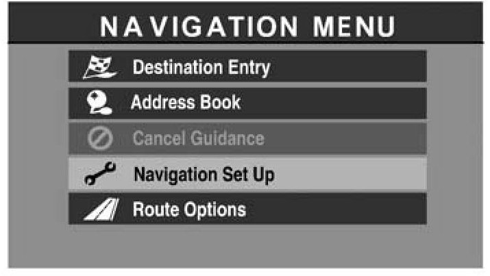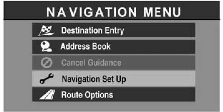 a. Press "Menu" and select "Navigation Set Up".
