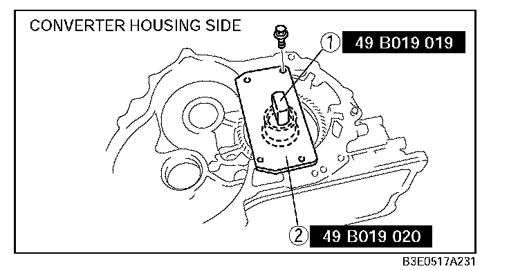 71. To ensure that the torque converter is installed accurately, measure distance A between the end of the torque converter and the end of the converter housing.