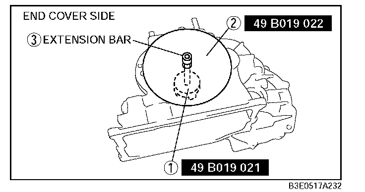 1) Install the thickest bearing race (2.6 mm (0.102 in)) to the end cover.